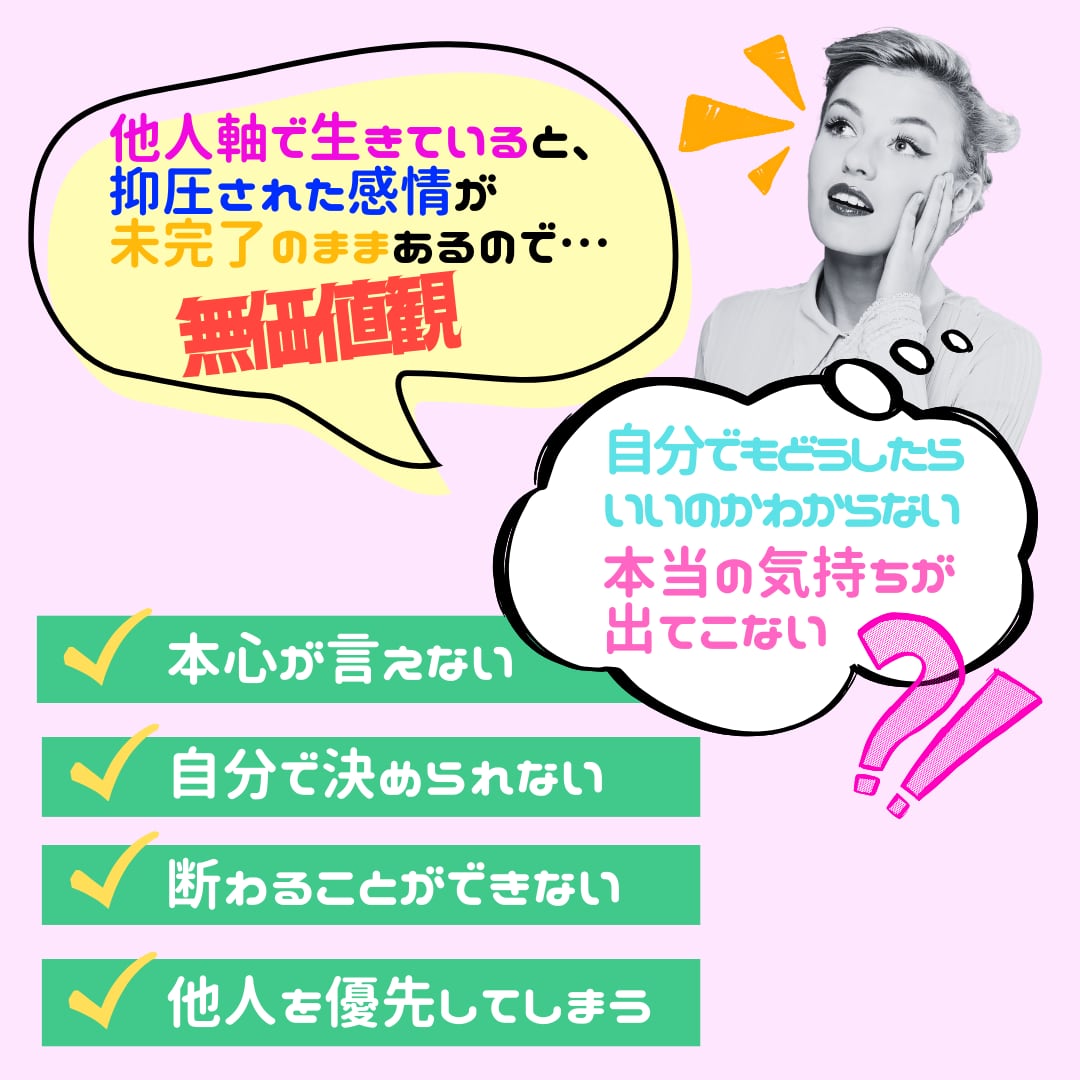 それは、潜在意識にある欲求を可視化(見える化)する事で、他者に承認を求めずとも、ご自身で許容し、自己認識を高めながら、自らに問いかけていく力がつくことで解決できます!